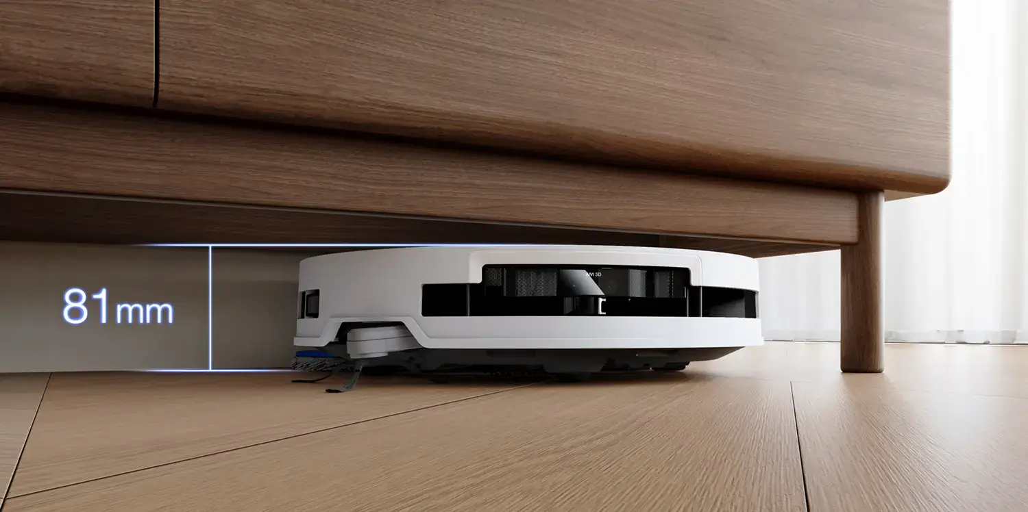 Mit nur 81 Millimetern Höhe kommt der DEEBOT T50 Pro Omni Gen2 selbst unter Sofas und Schränke, wo andere Roboter längst passen müssen. Möglich macht das ein neu integriertes dToF-LiDAR-Modul, das den Aufbau extrem flach hält und eine volle Orientierung und Raumabdeckung garantiert.
