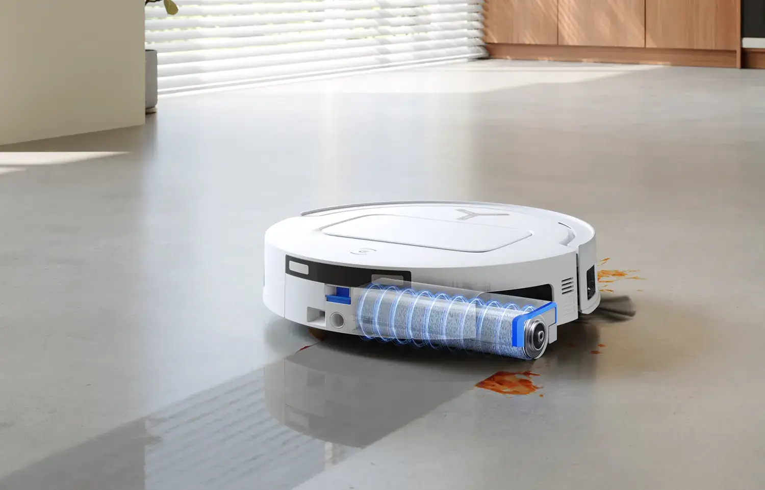 Das überarbeitete BLAST-System mit 100-Watt-Motor und vergrößerten Lüfterblättern erzeugt einen kräftigen Luftstrom, der laut Ecovacs 140 Prozent mehr Feinstaub und über 260 Prozent mehr Haare als vergleichbare Mittelklassemodelle aufnimmt. Gewischt wird mit dem OZMO ROLLER 2.0 etwa 16-mal gründlicher als mit Systemen, die zwei Tellermopps und Vibrationsplatten verwenden. Die Walze wird bei jeder Umdrehung gereinigt und löst mit konstantem Druck selbst eingetrocknete Flecken. Dank TruEdge 3.0 arbeitet der Roboter millimetergenau entlang von Wänden und Möbeln – typische Schmutzränder gehören der Vergangenheit an.